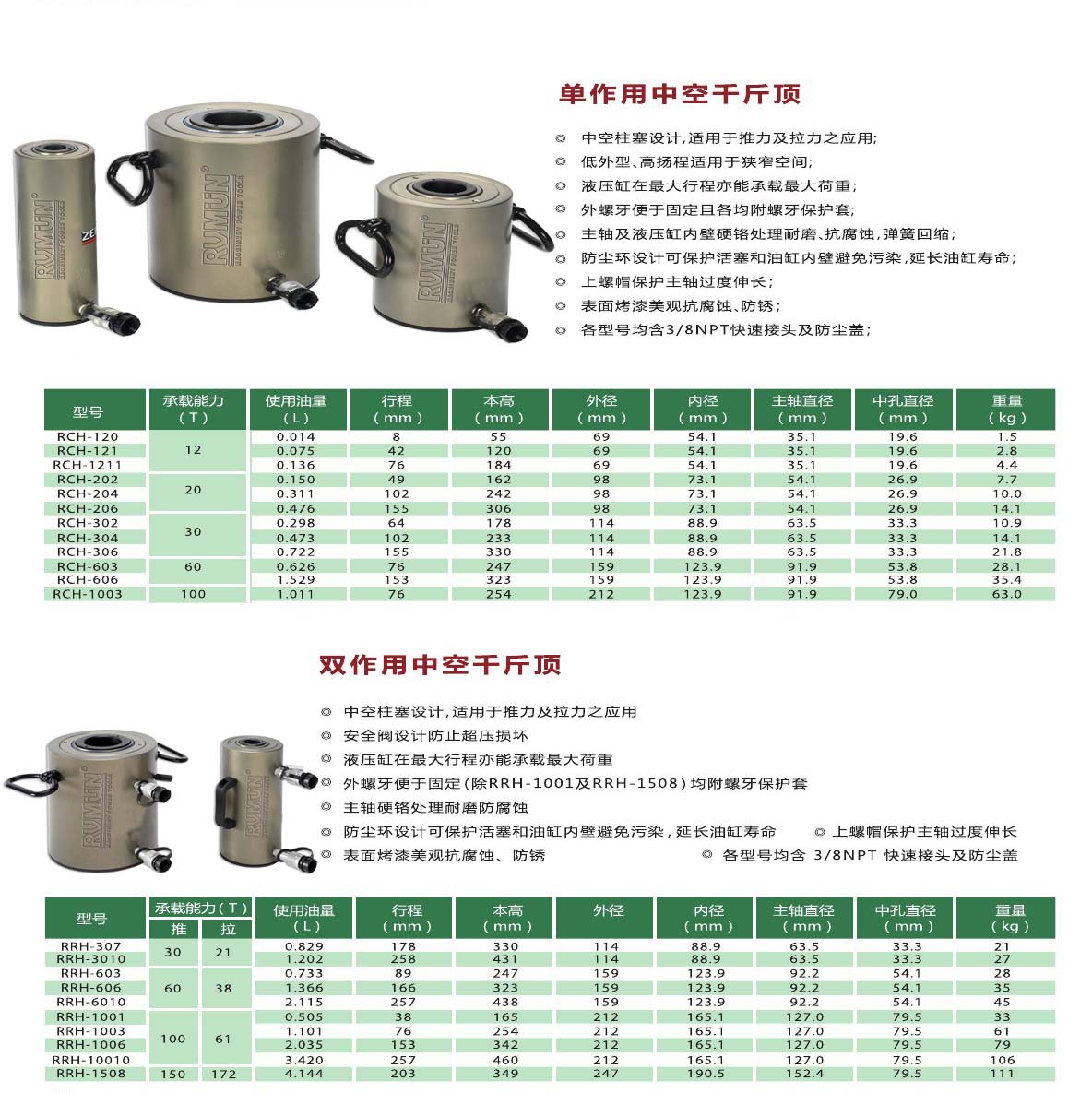 ★若需要更大規(guī)格的液壓千斤頂或定制滿(mǎn)足不同工況的特殊中空液壓千斤頂請(qǐng)與RVMUN銷(xiāo)售工程師或就近分銷(xiāo)商聯(lián)系