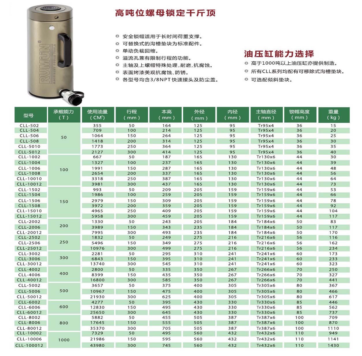 ★若需要更大規(guī)格的液壓千斤頂或定制滿足不同工況的特殊自鎖螺母液壓千斤頂請與RVMUN銷售工程師或就近分銷商聯(lián)系